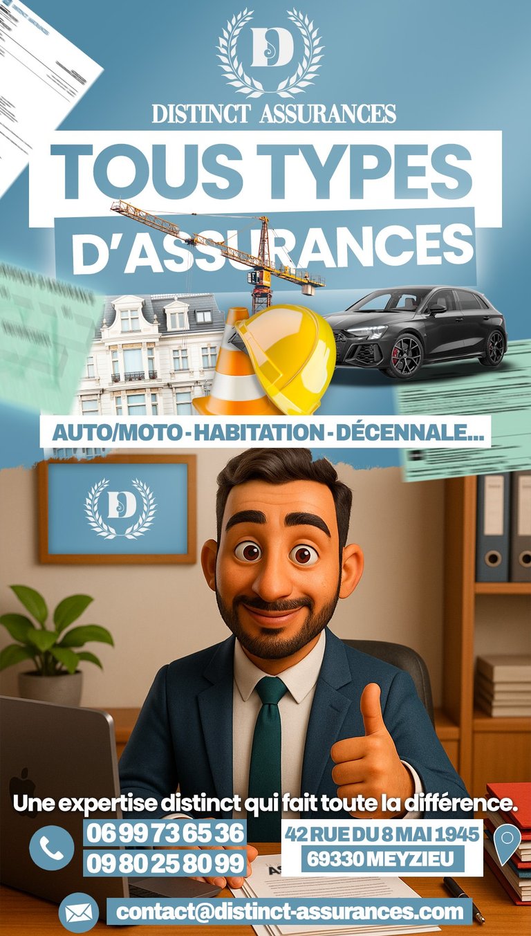 Distinct Assurance, dirigée par Laieb Ferhi, offre des solutions d'assurance variées pour auto, moto, décennale et habitation, adaptées à chaque besoin de nos clients.